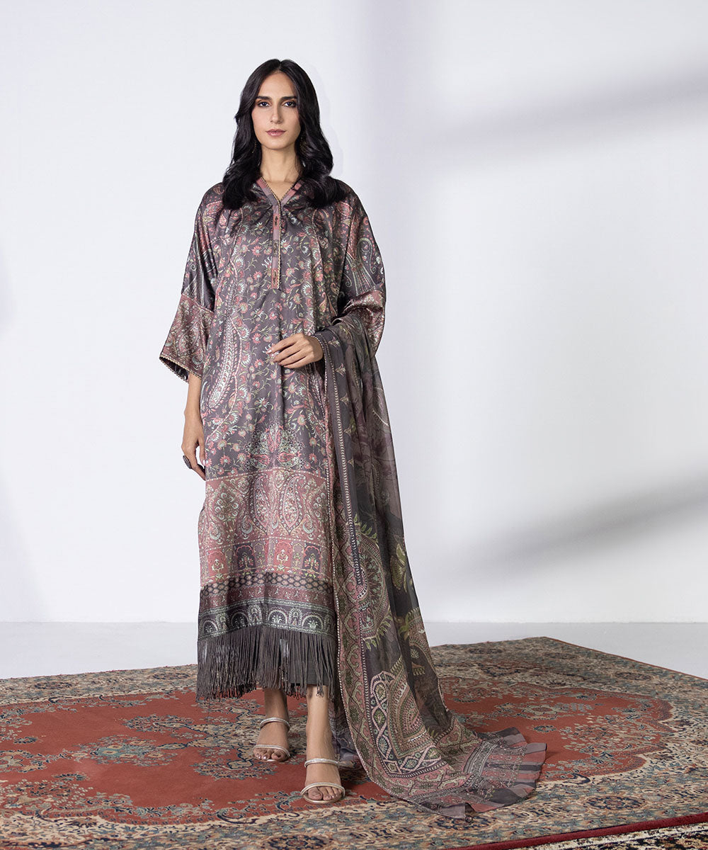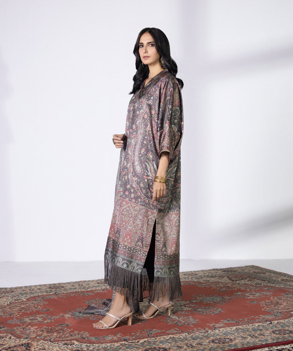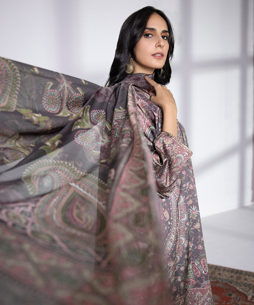 Make a statement in our stone blue two-piece featuring enticing patterns Unstitched 2-PieceShirt: Printed Khaddar Shirt 3M Fabric: Khaddar Colour: Stone Blue Trouser: Printed Khaddar Trouser 2.5M Fabric: Khaddar Colour: Stone Blue