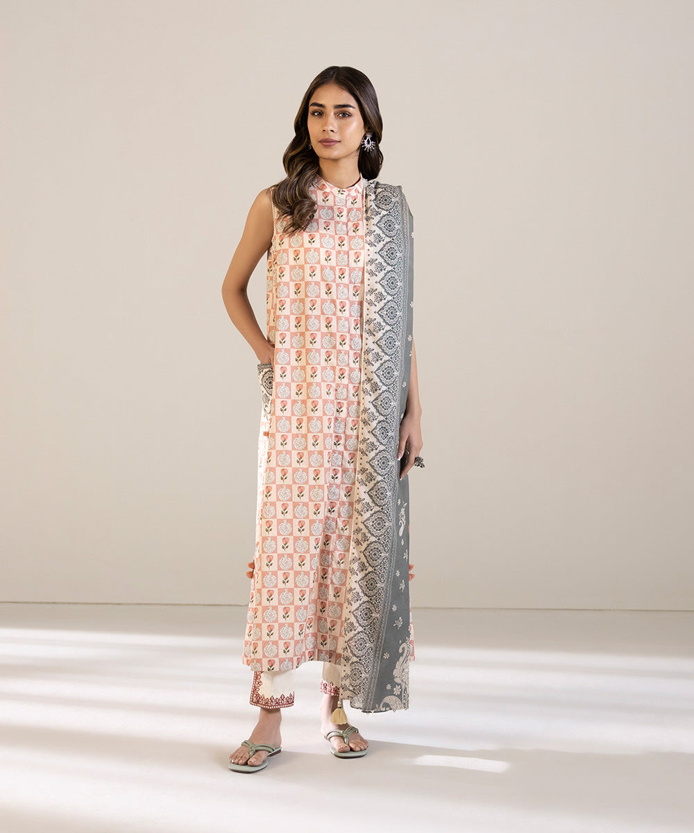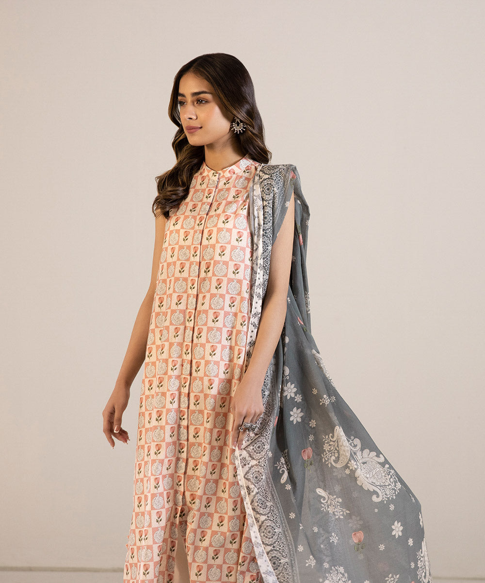 Adorn soft hues with this two-piece cambric ensemble featuring a cambric trouser
