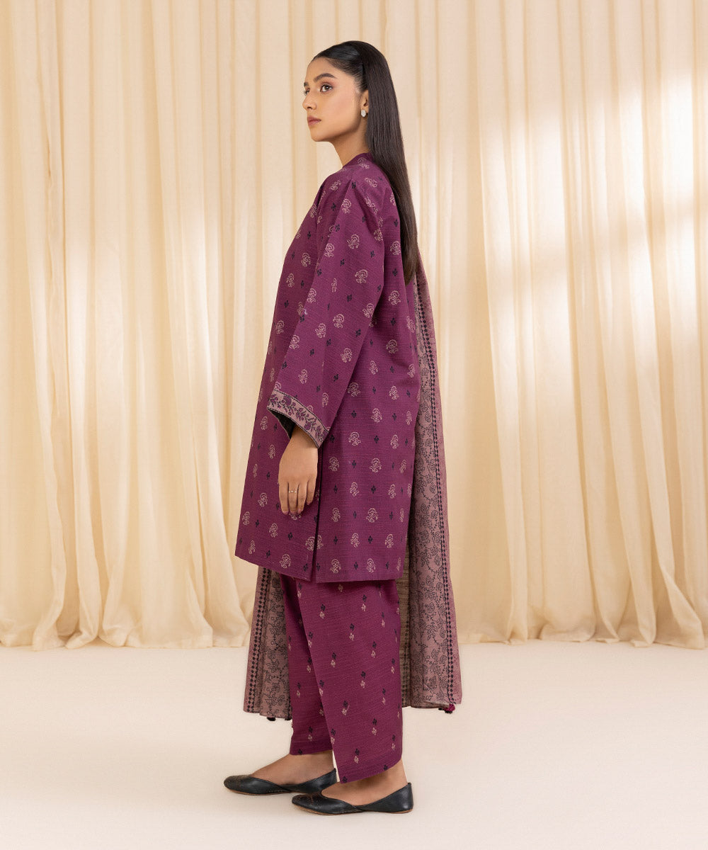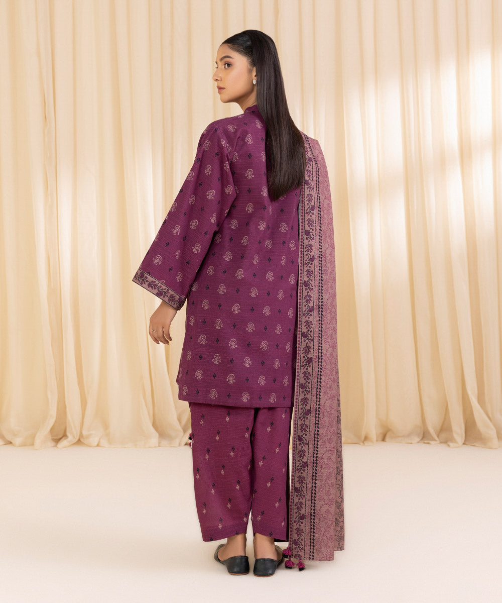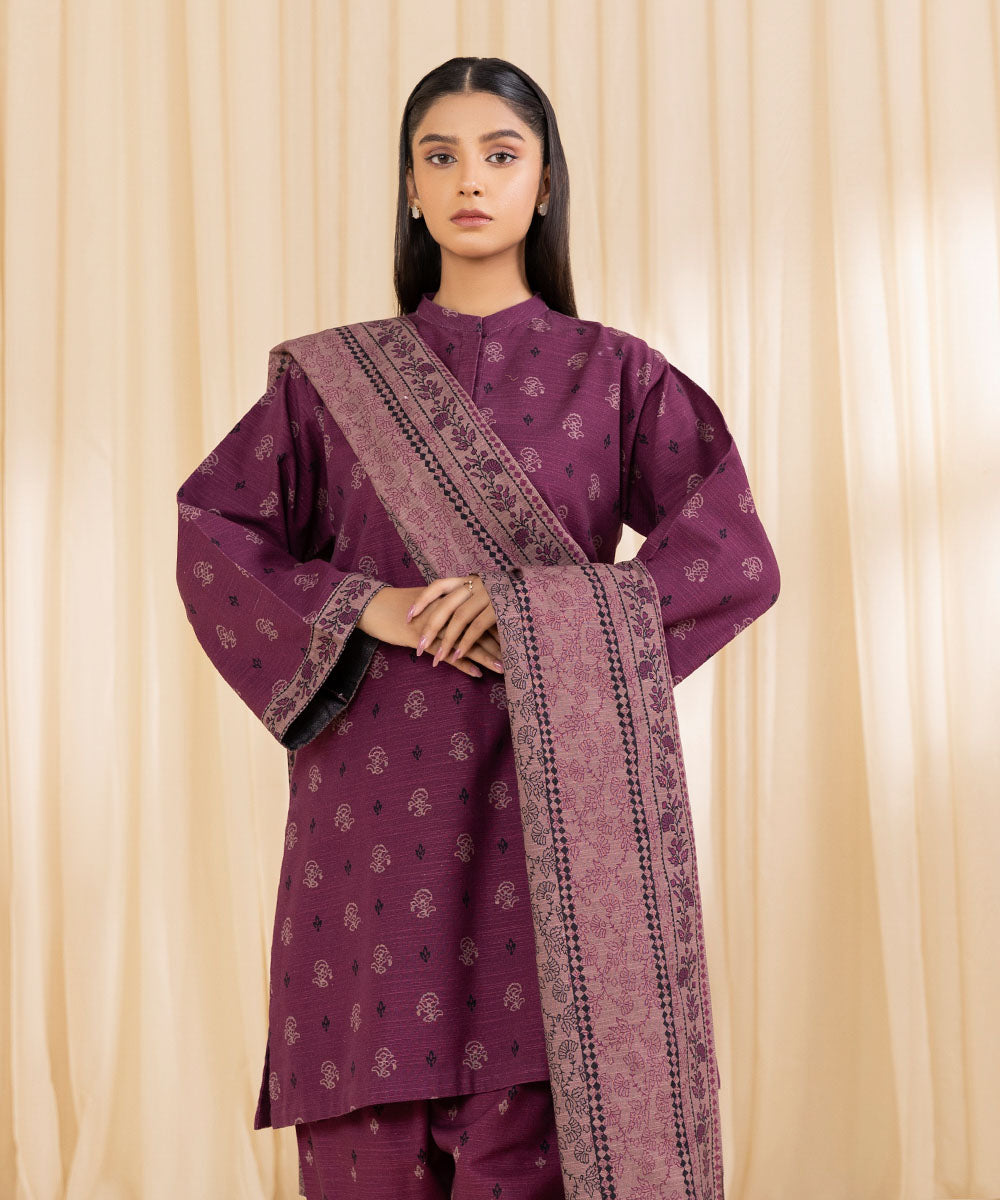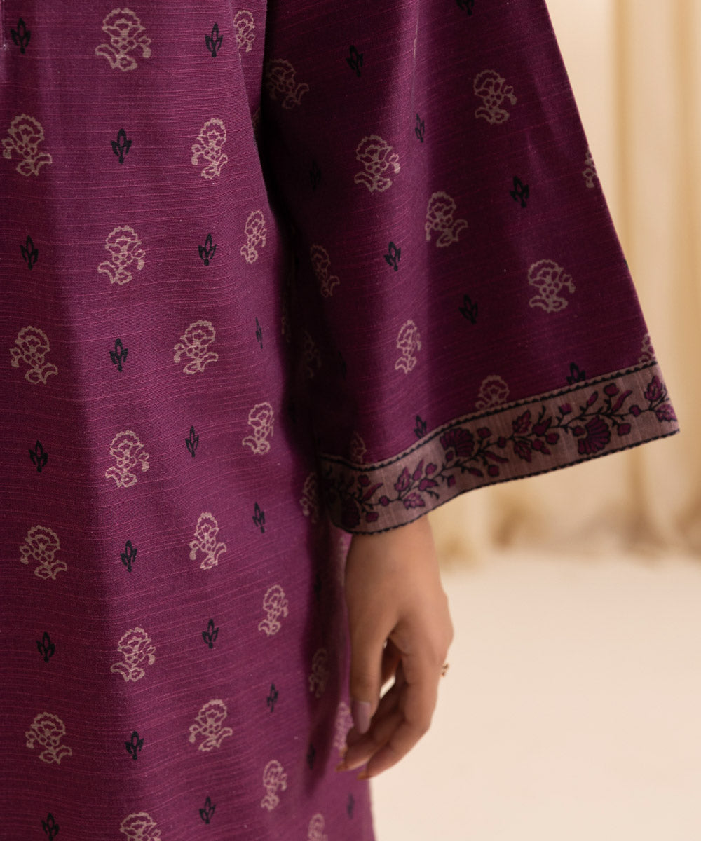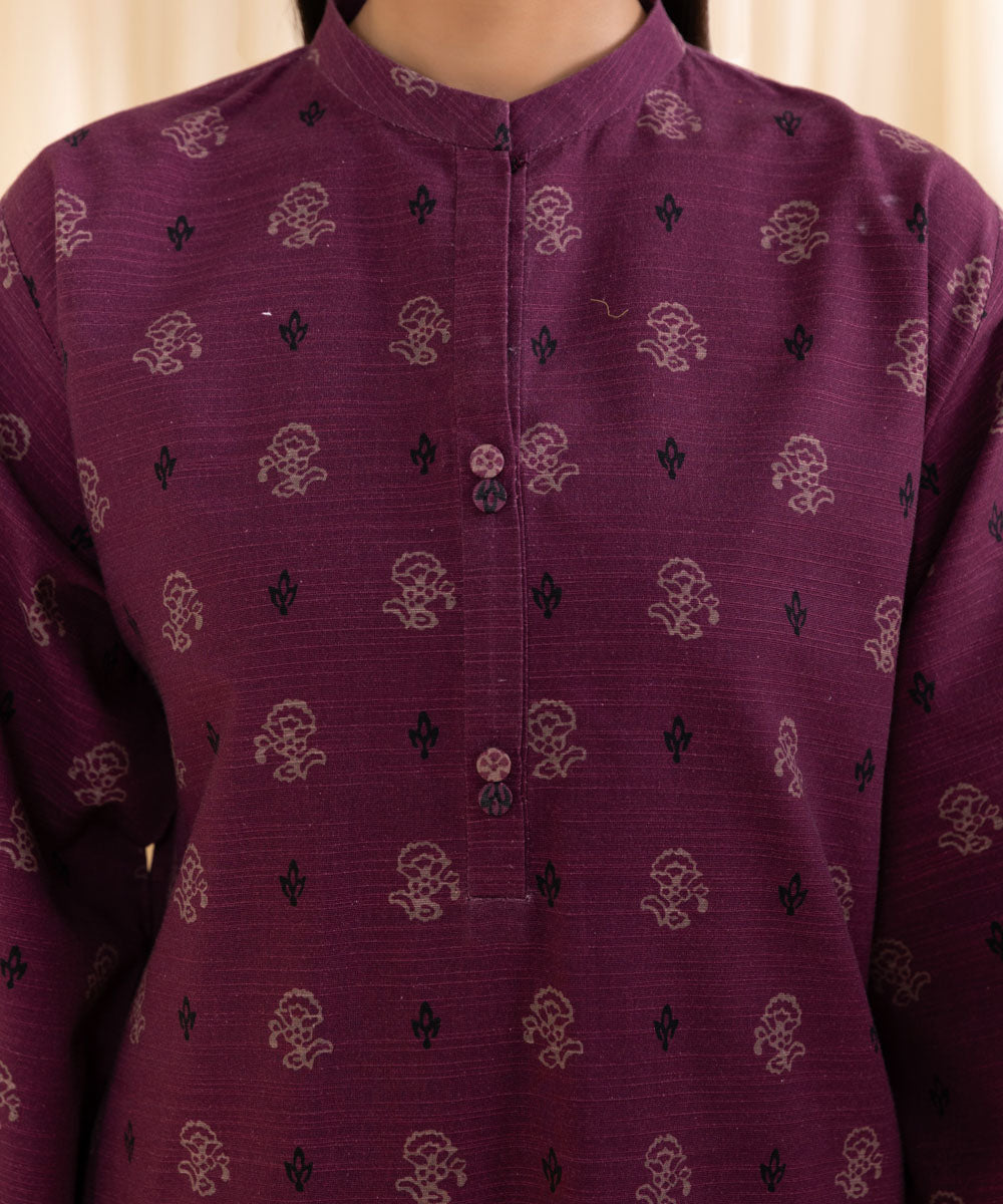 Perfect your winter style with our printed one-piece ensemble in plum featuring a printed khaddar shirt Unstitched 1-PieceShirtPrinted Khaddar Shirt 3MFabric: KhaddarColour: Plum