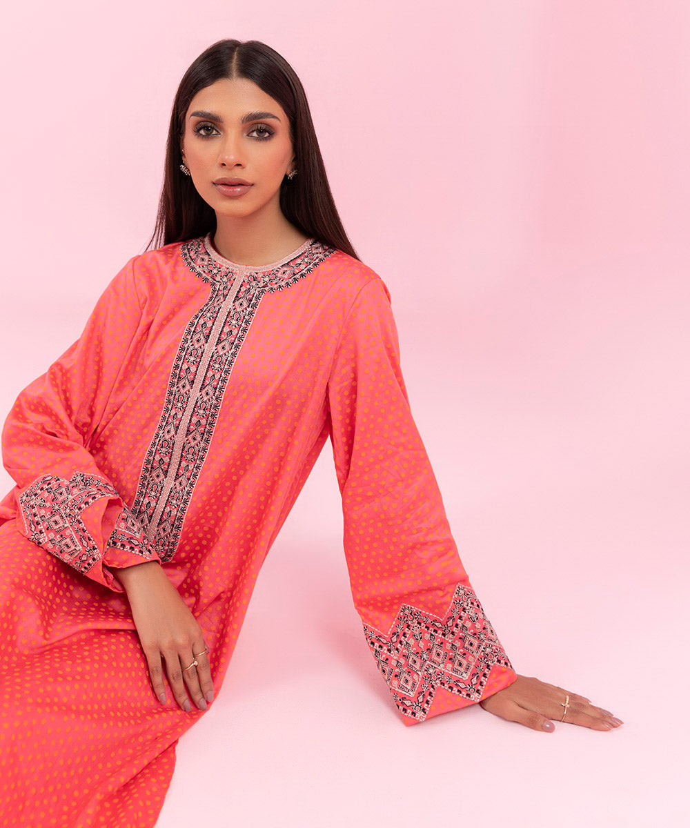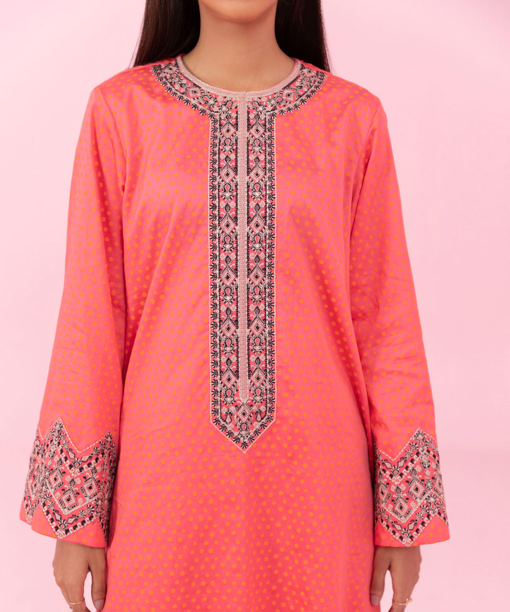 Printed Front with Embroidery, Printed Plain Back, Full Sleeves, Crew Neckline