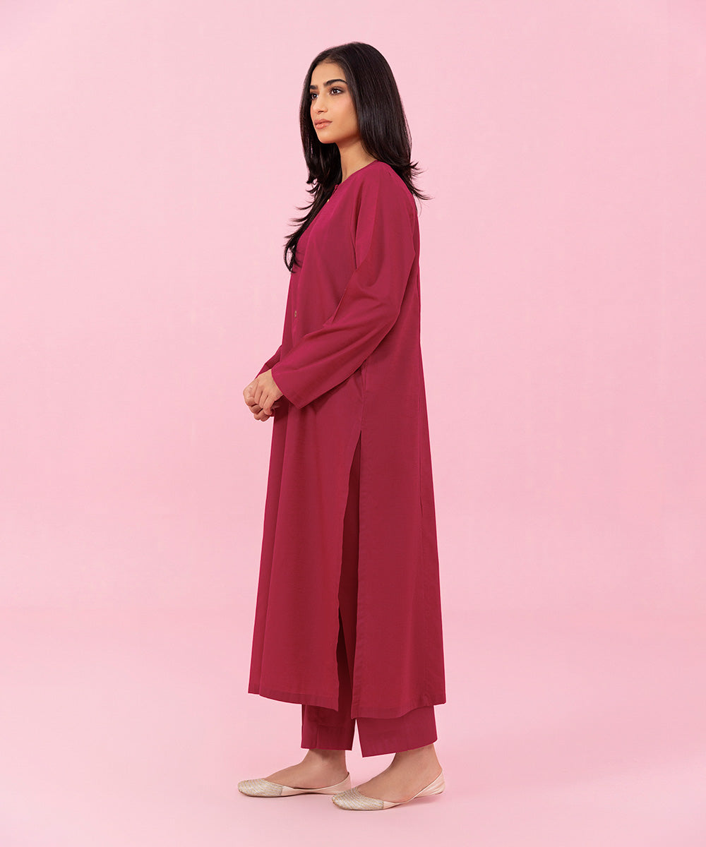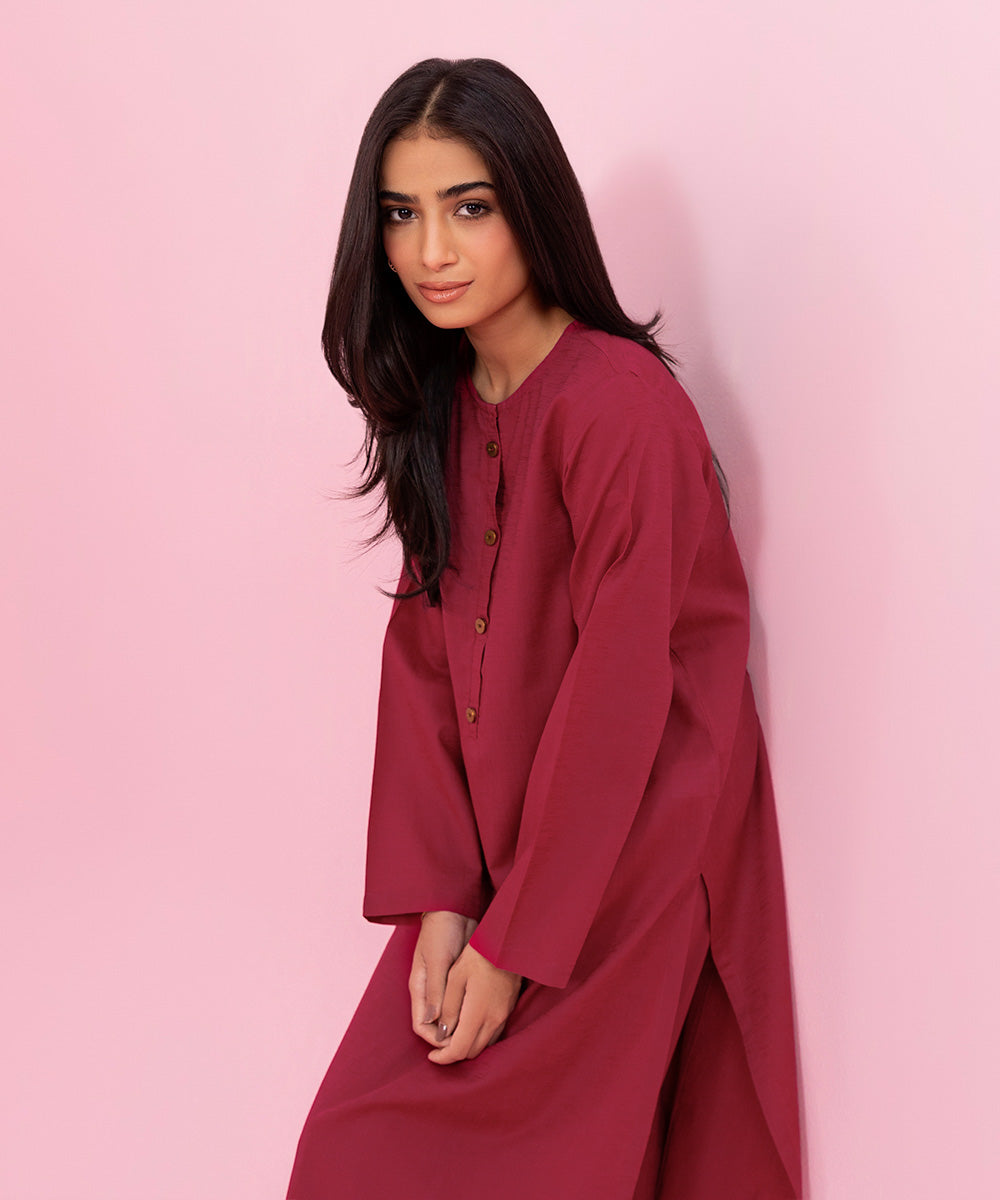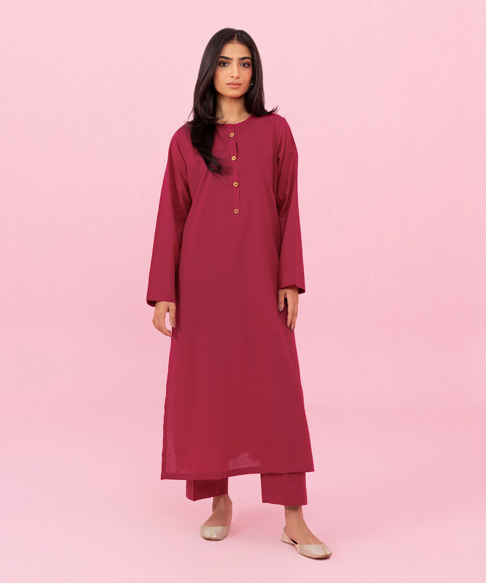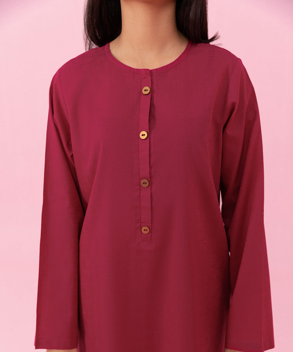 Dyed Plain Front, Dyed Plain Back, Full Sleeves, Round Neckline with a placket
