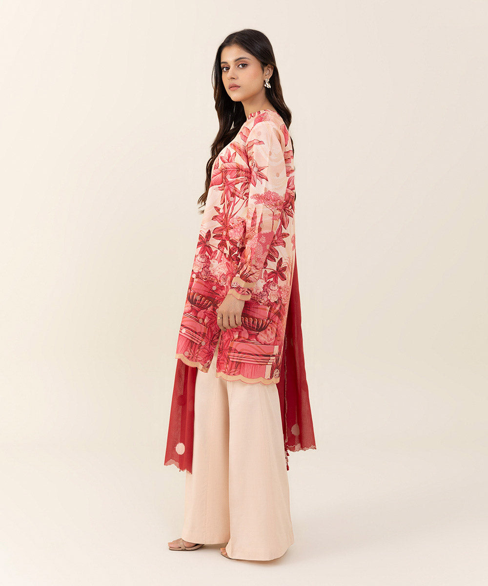 Indulge in a floral fantasy with our rose red two-piece featuring a voile dupatta.