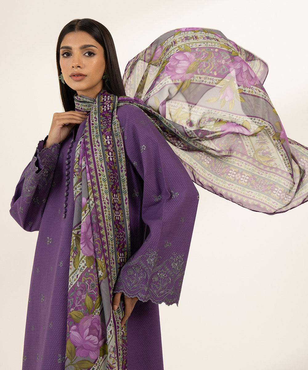 Revel in majestic hues with our Russian violet two-piece featuring intricate detailing.