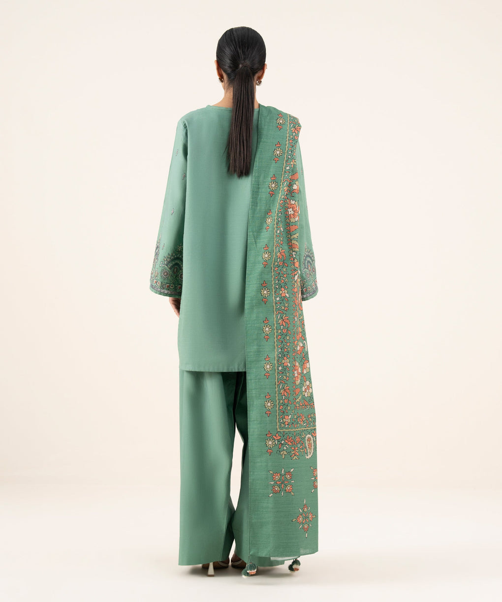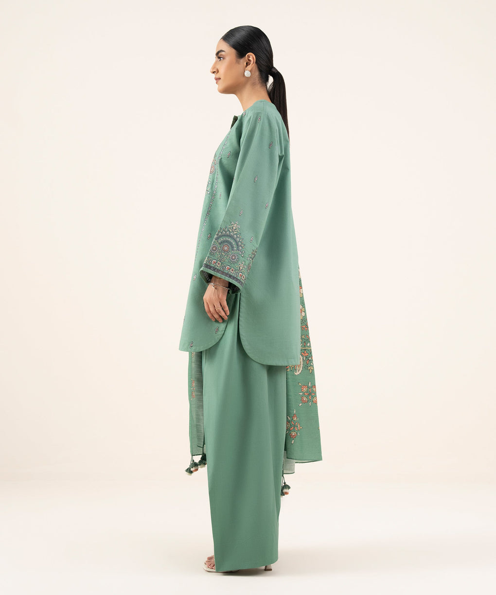 Make a statement with our two-piece embroidered ensemble featuring a textured cotton shirt paired with a blended dupatta.