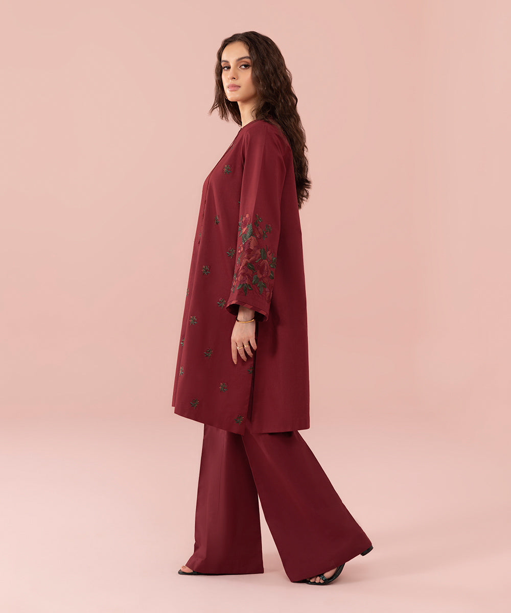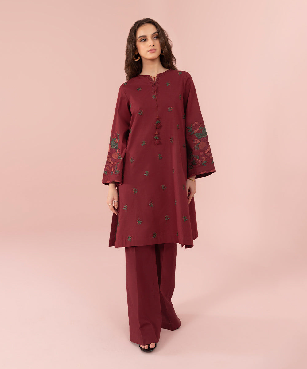 Our collection features traditional patterns and ethnic flair. Opt for our red two-piece ensemble!