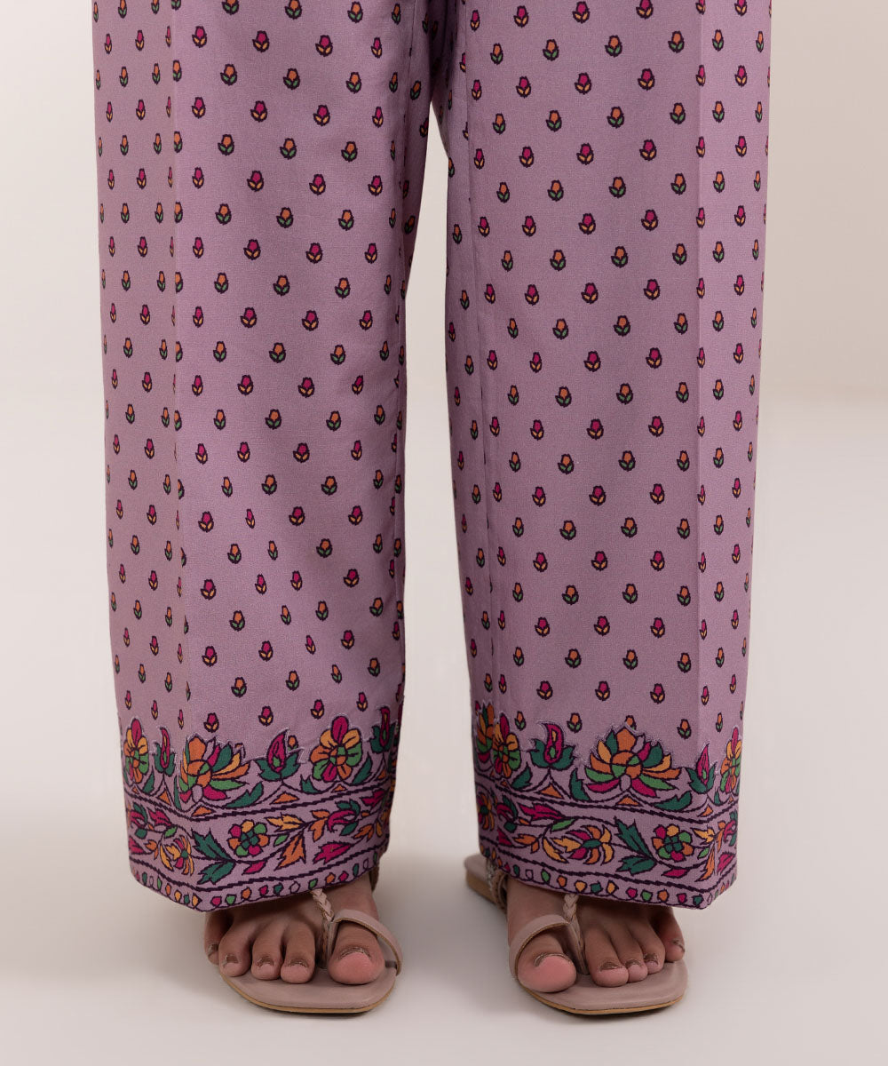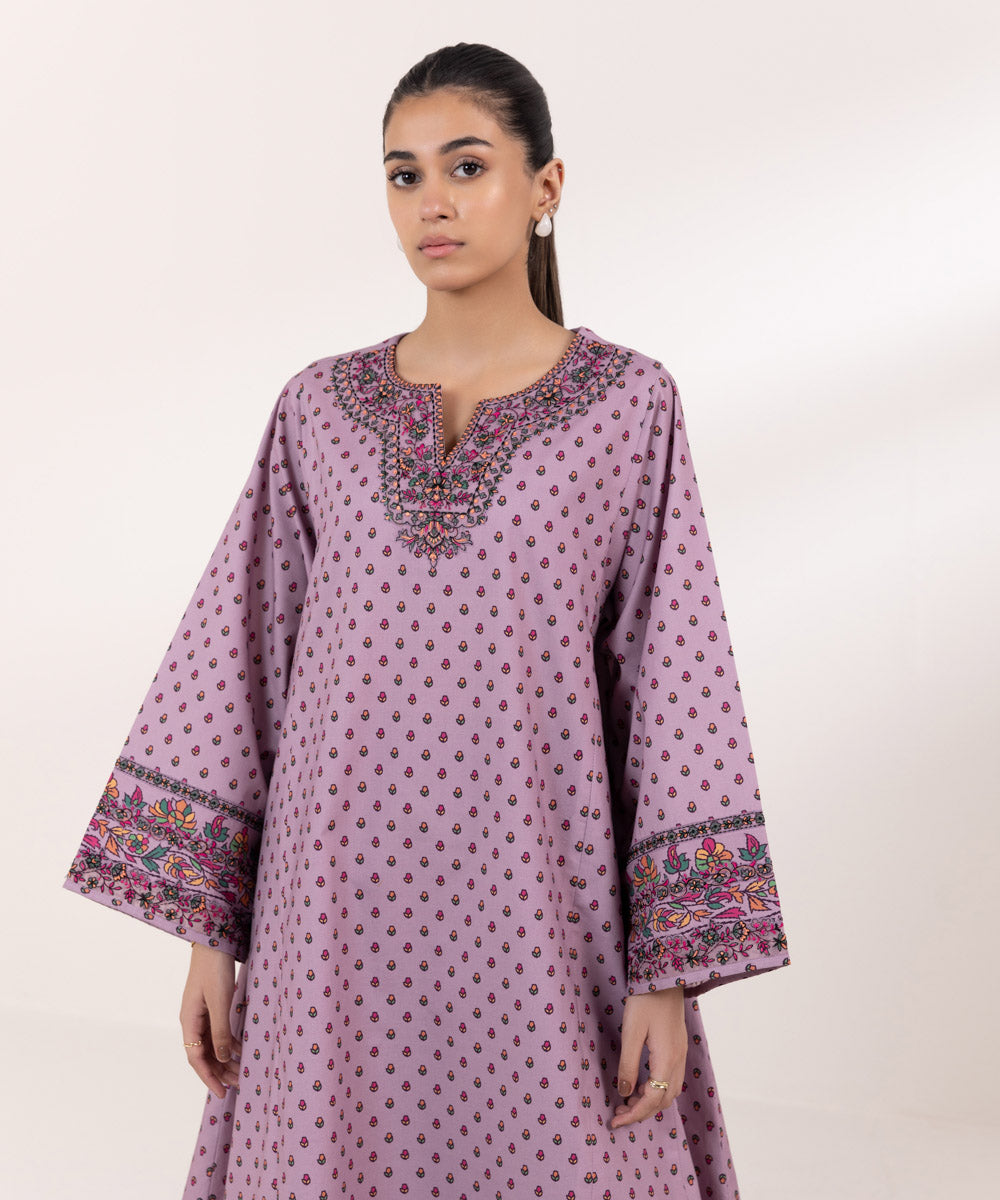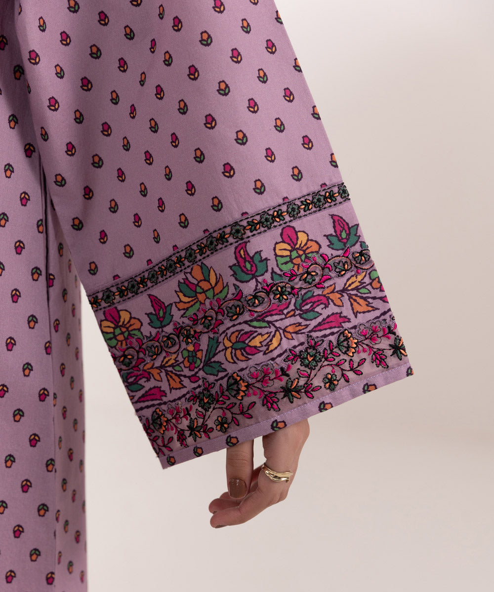 Embrace the allure of tradition with our mauve embroidered cambric two-piece featuring a shirt and trousers.