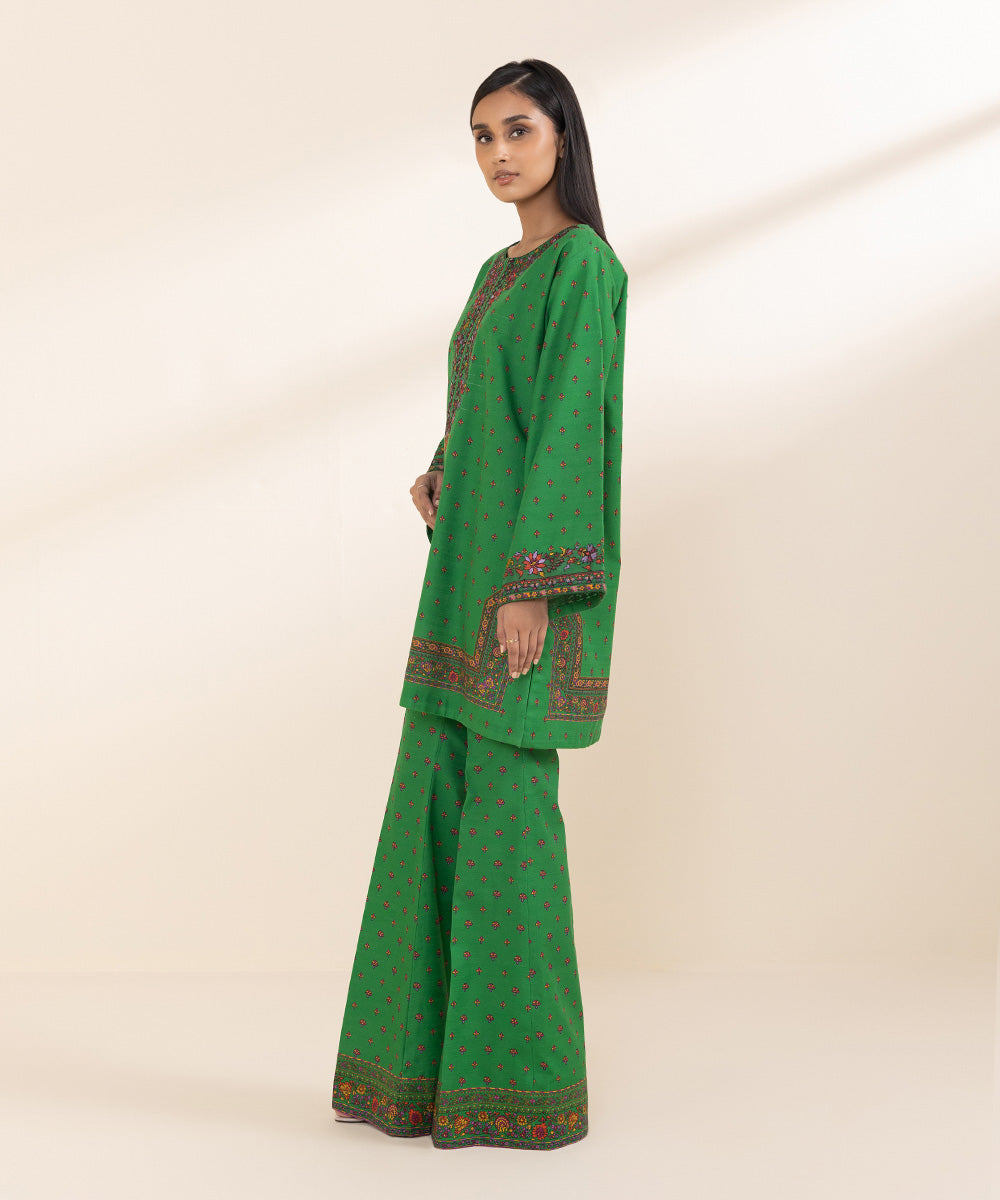 Nail the trendy winter look with our khaddar forest green two-piece featuring an embroidered shirt and trousers.