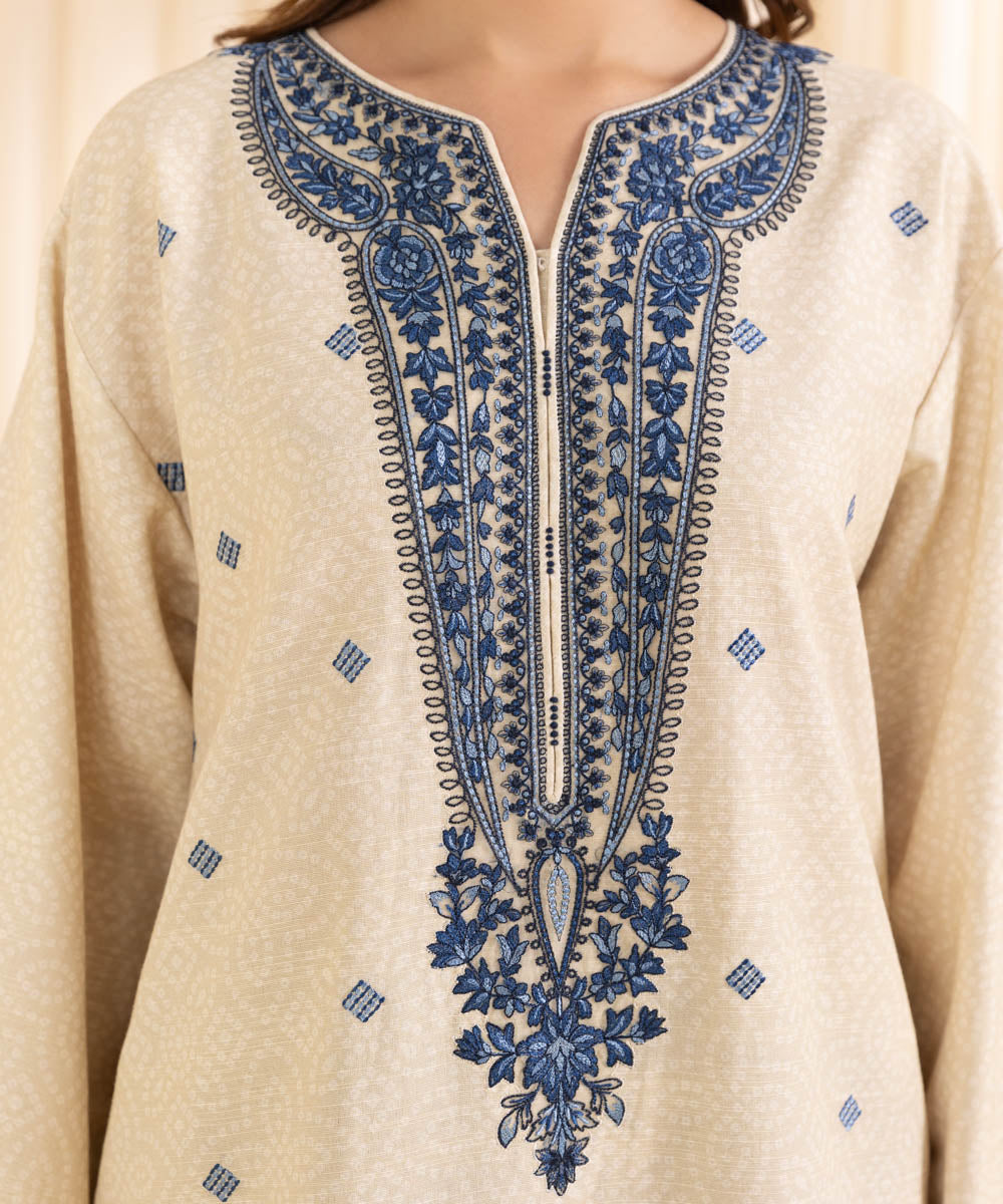 Embroidered Neckline & Hem Border 2PC