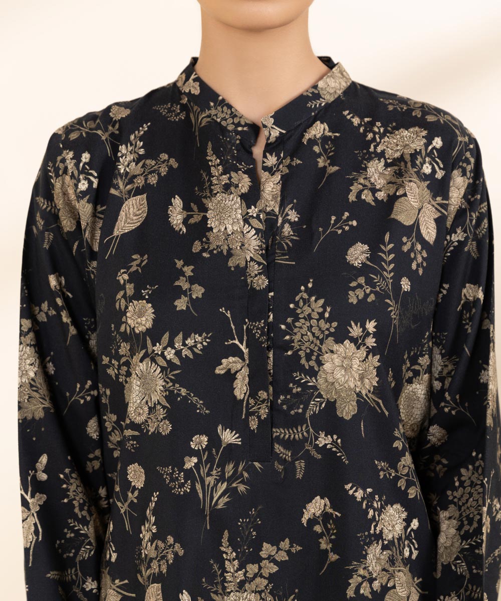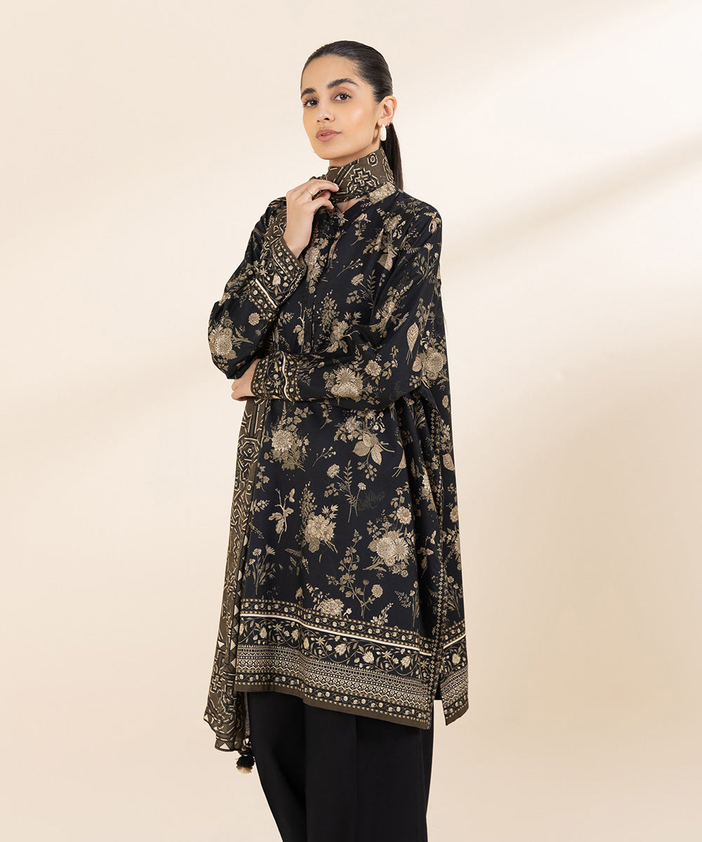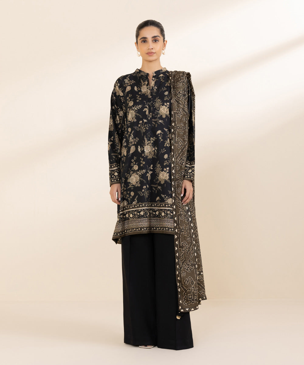 Embrace winter chic in our black three-piece linen printed shirtUnstitched 1-Piece Shirt: Printed Linen Shirt 3M Fabric: LinenColour: Black
