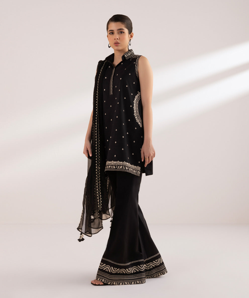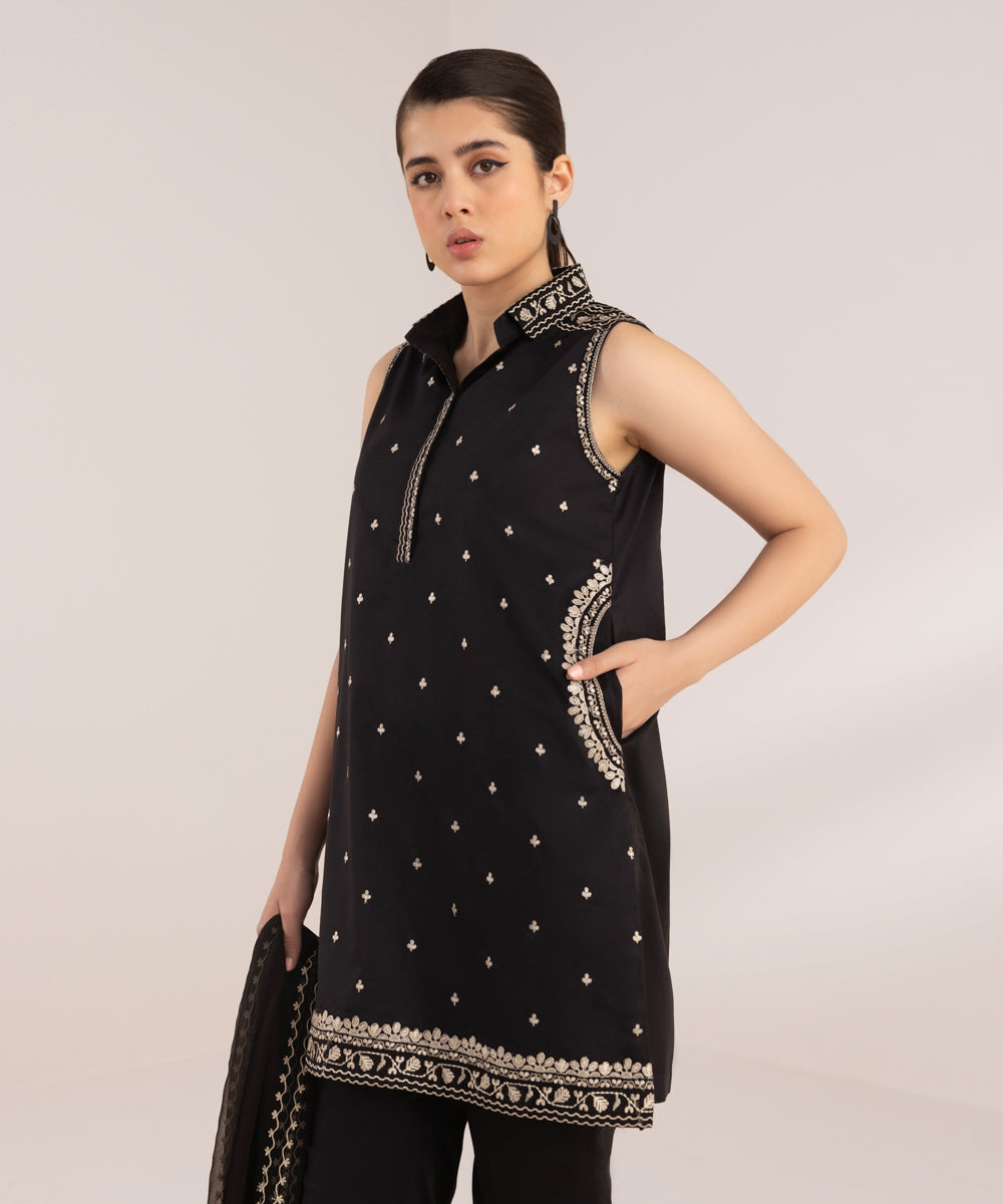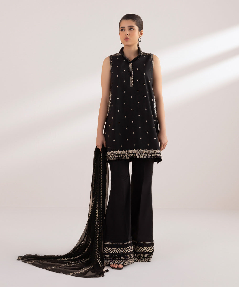 Make a traditional statement with our One-piece embroidered shirt in black and white Unstitched 1-Piece Shirt: Dyed Embroidered Lawn Shirt Front 1.15M Fabric: Lawn Colour: Black & White
