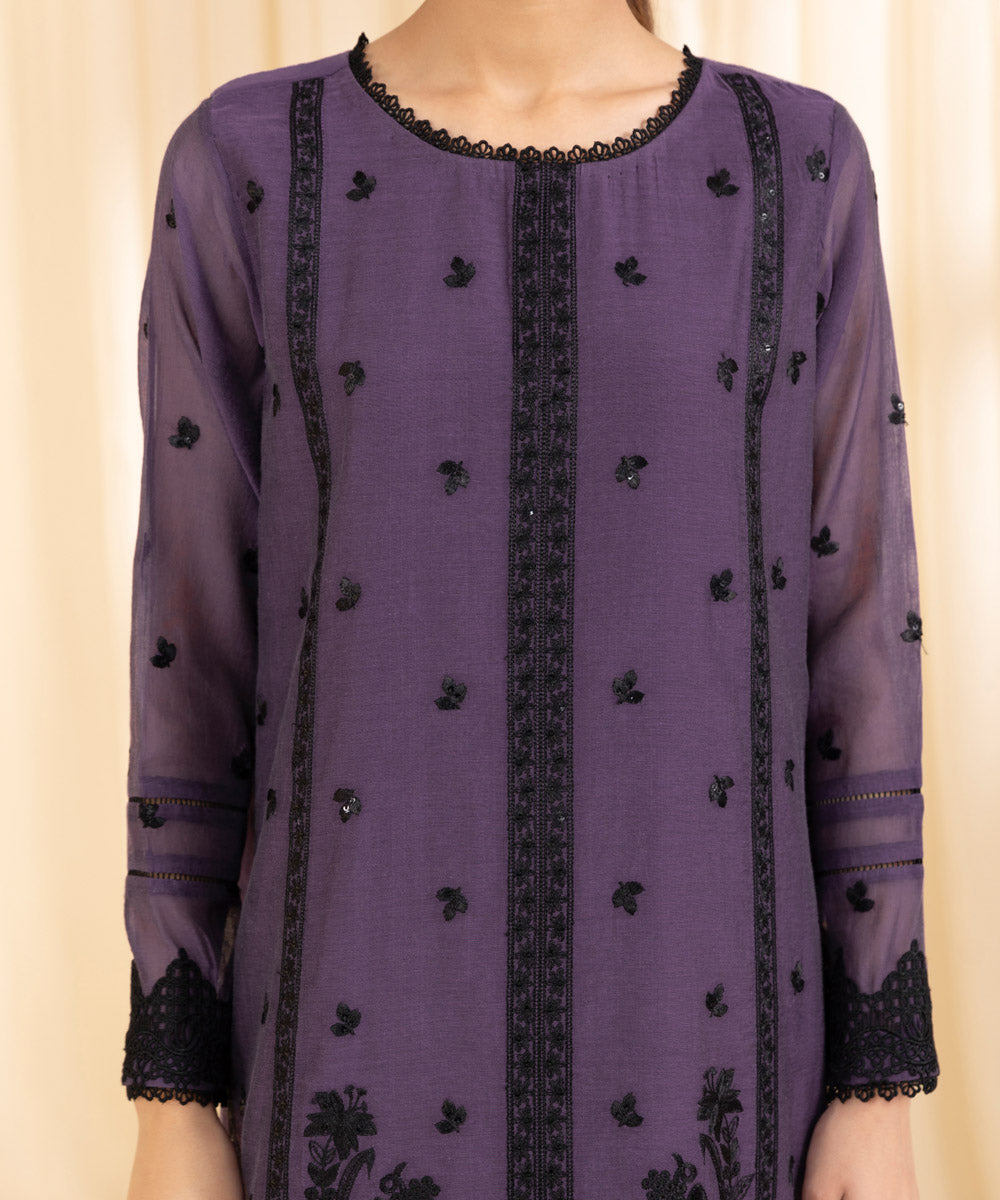 Dyed Embroidered Blended Muslin Shirt Sleeves 0.66M