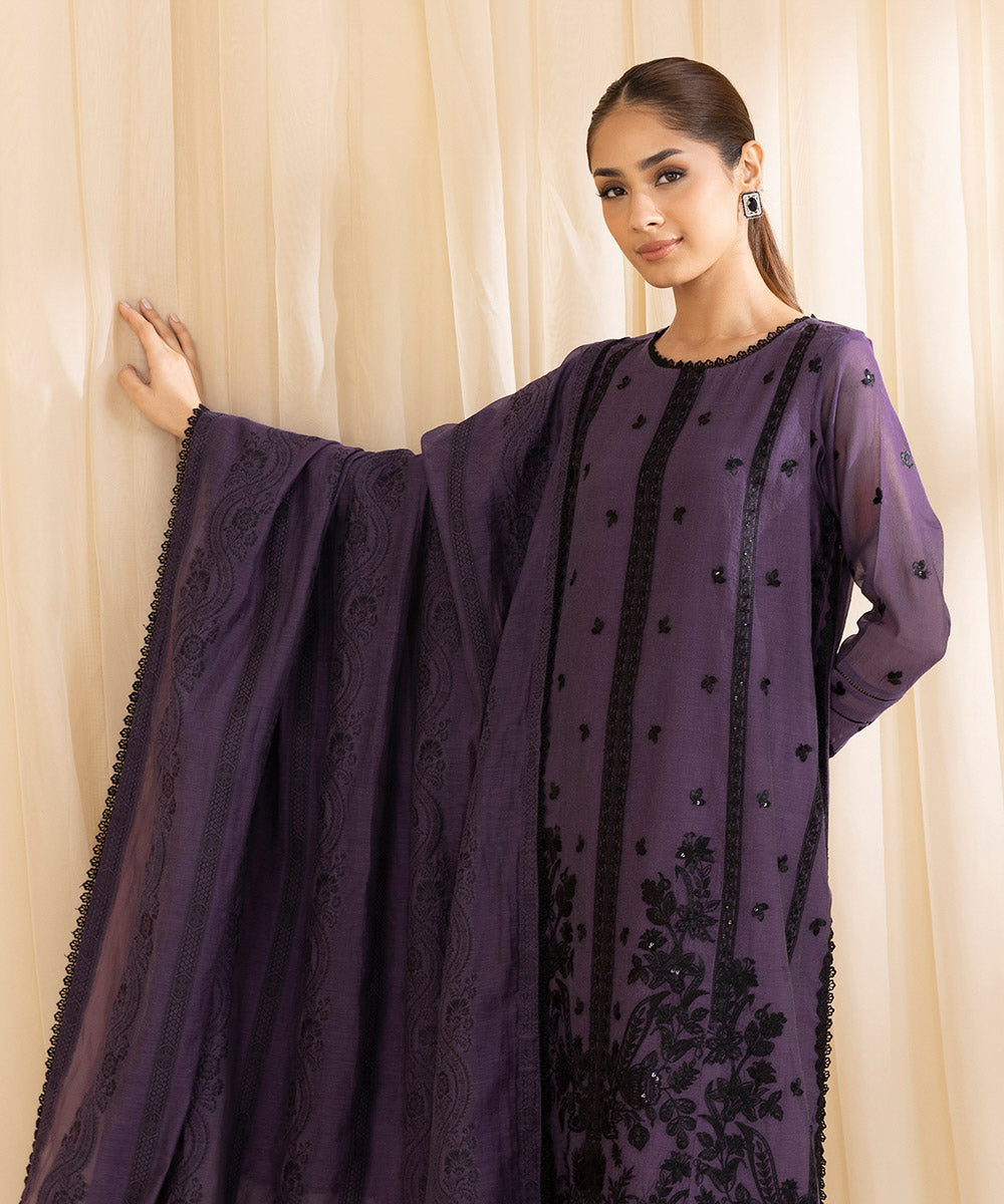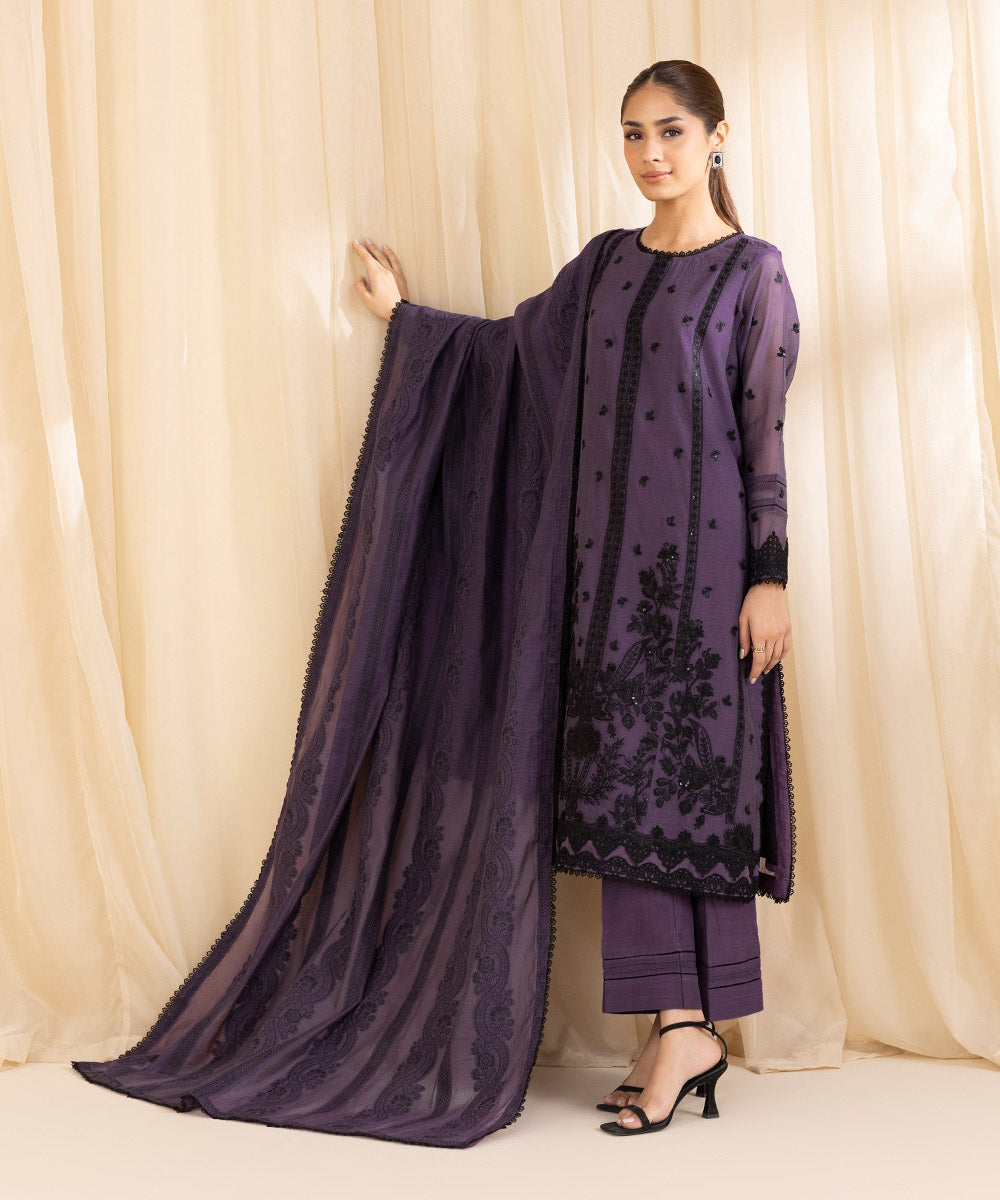 3 Piece - Embroidered Muslin Suit