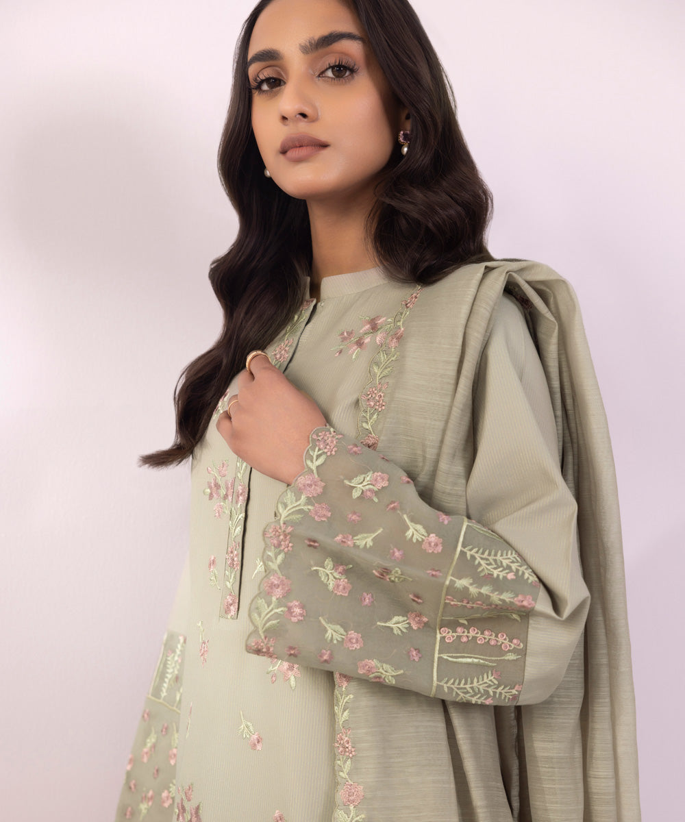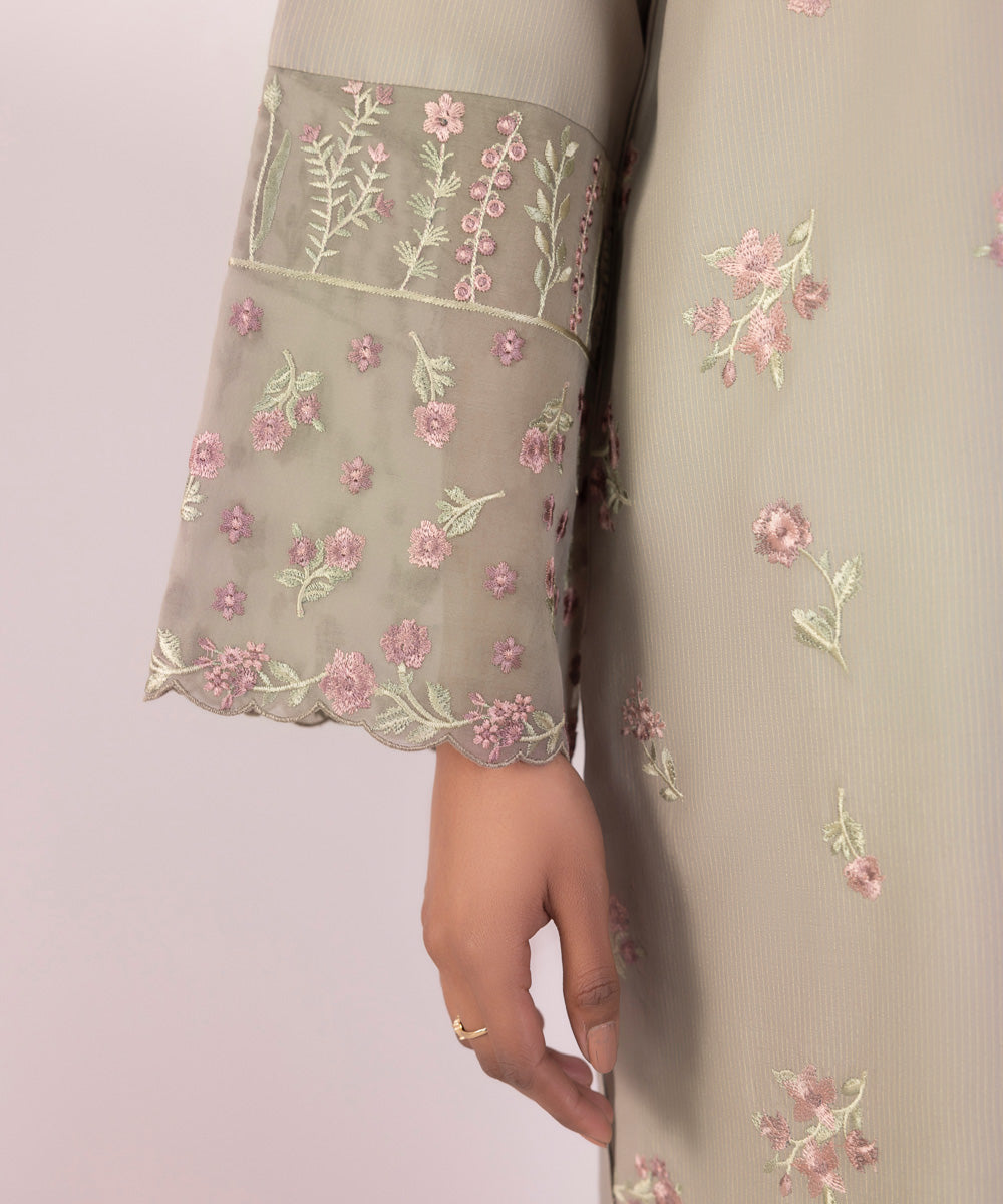 Immerse yourself in a vibrant palette with our grey one-piece embroidered shirt zari lawn shirt, Unstitched 1-Piece Shirt: Dyed Embroidered Zari Lawn Shirt Fabric: Zari LawnColour: Grey
